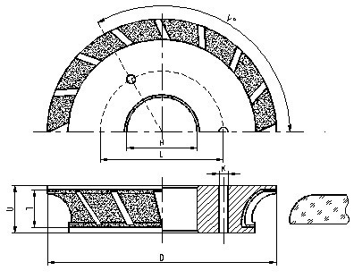 Type - 4H6Y/S Diamond edging grinding wheel (with slots) - TURBO