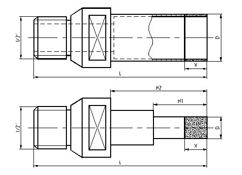 Size of diamond grit: D91 - D456 (FEPA) Bond: sintered metal M Order example: type D x X x L diamond grit 2A2 26 x 10 x 75 D213