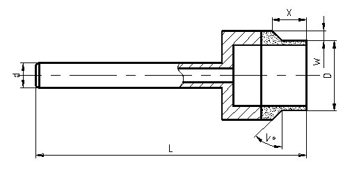 NOTE! We can make the mills of other dimensions. Diamond grit size: D91 - D456 (FEPA) Bond: sintered metal M Order example: type D x X x L diamond grit 2A2CW 26 x 10 x 30° x 75 D213 Available pages: