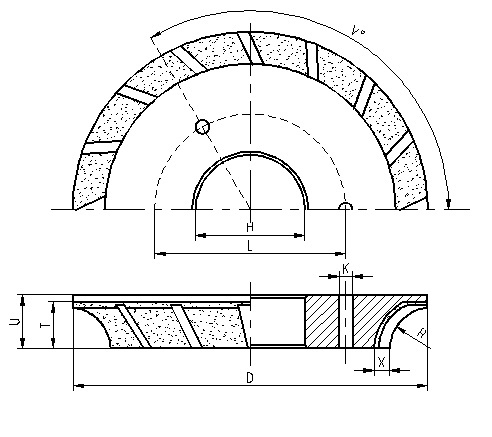 Size of diamond grit; Bond: D39 - D251 (FEPA) sintered metal M; Order example: type D x T x X x H x R diamond grit.; 1F6Y/S 150 x 12 x 15 x 40 x R9 D252 projekt: emdwa