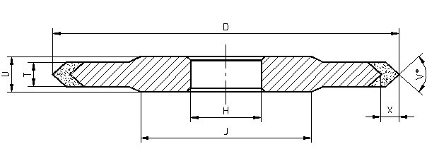H, J, U - en accord avec l'exigence ATTENTION! Autres dimensions possible après demande Quantité de grain diamant: D39 - D251 (FEPA) Liant: métal fritté M Example d'ordre : type D x T x X x H x Vo grain diamant 14EE1 200 x 4 x 10 x 42 x V90o D54 Pages disponibles: